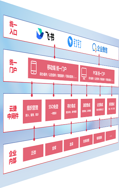 对协作平台提供支持服务,,,支持企业应用与协作平台对接,,,包含组织同步、、、、消息集成、、、、待办集成等。。支持目前主流的协作平台:钉钉、、、企微和飞书。。。。